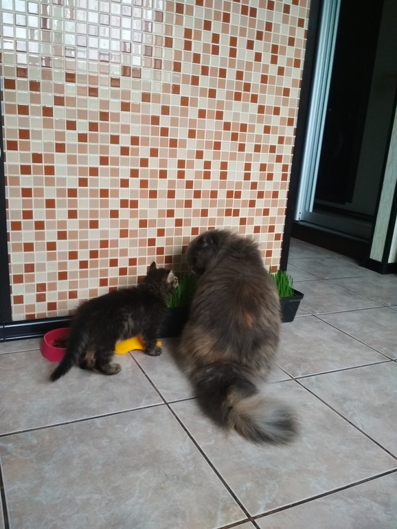 Пс. Мотильда позволила Тише понюхать и уткнуться в хвост. Господи, хоть бы они подружились!