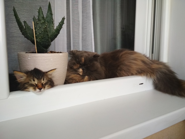 Тиша компанейский котеночек, пытается с Мотей подружиться, Мотька нет нет, да забудется и подпустит к себе, потом что то вспомнит и шипеть!