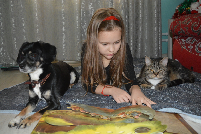 На передержке живет своя кошка (2 г.) - стерильна, своя мелкая собака (сука, 4г.) - оба дворики. Привиты.