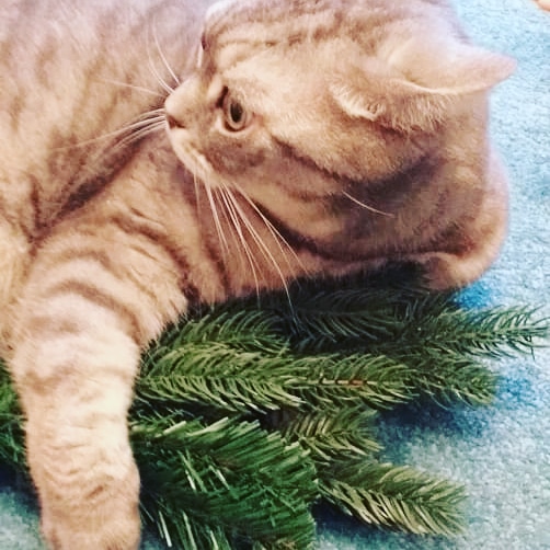 А это наш похититель елок. Когда собирали лапы воровал. А теперь таскает игрушки с ёлки и бывает что целую ветку вытащит.