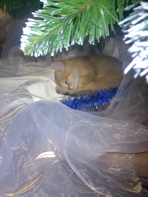 Под елкой был тюль на белую ткань - как красивый снежок и Дед Мороз. Теперь там все раскурочено и хозяйничает Соня))))