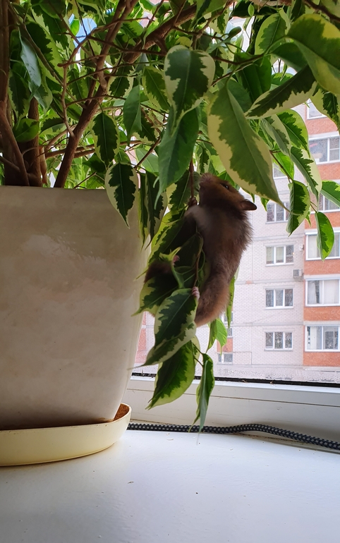 Каким то невероятным образом лапкой дотягивается до листика и пошло поехало)))))