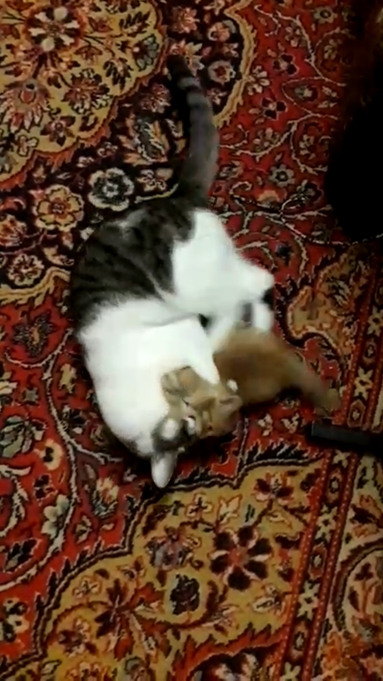 Как ни крути, но отца у котёнка целых два и каждый вносит свою лепту в воспитание 😁