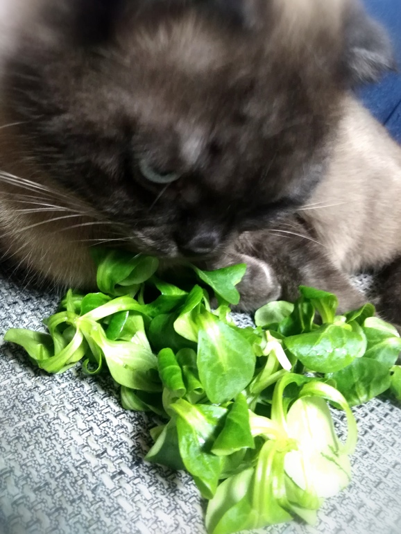 О да, салат наш кот обожает и пекинскую капусту тоже, а ещё фасоль стручковую ест