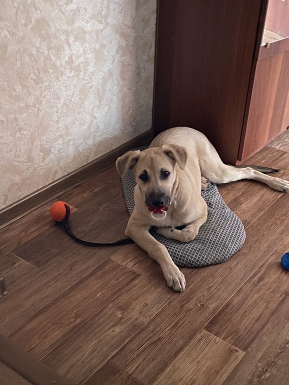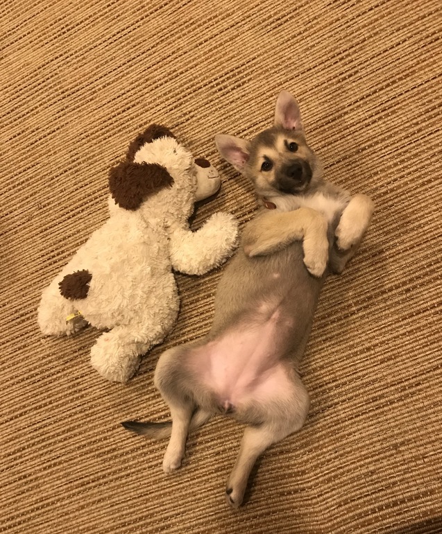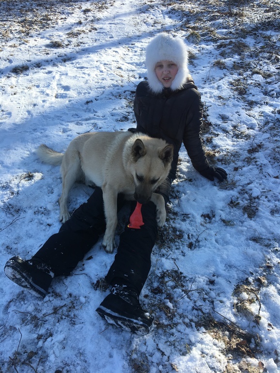 Забрали мы месячного щенка себе, бессонные ночи с плачущим «ребенком» постепенно сошли на нет. Привили, выдержали карантин, в январе начали гулять. Ну как гулять, снег топтать. Она боится всего: машины, люди, животные, пролетающие мимо от ветра пакеты... В общем, все содержимое себя несёт обратно домой.
