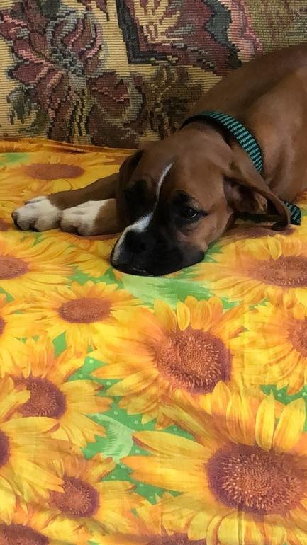 Помогите советомУ родителей собака боксёр 6 мес. Частный дом, двор забетонирован, есть огород. Пока была меньше держали в доме и на террасе. Сейчас носится как гончая по всему участку, стирает подушечки на передних лапах, болят, лежит, потом подживает и снова гонки.