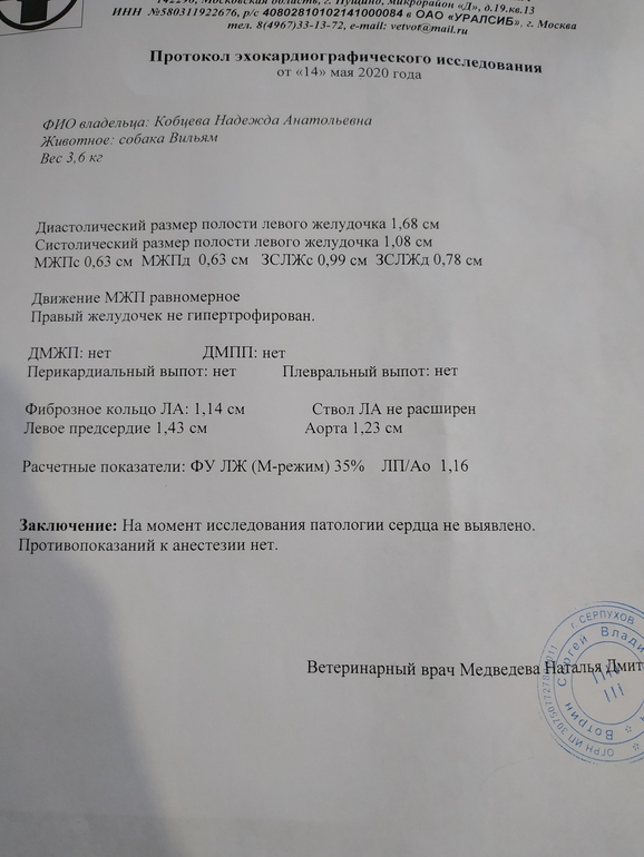 Этой клинике я доверяю. Сделали нам УЗИ сердца, почек, мочевого пузыря, предстательной железы. Взяли кровь и мочу. Посмотрели глазки, зубки.