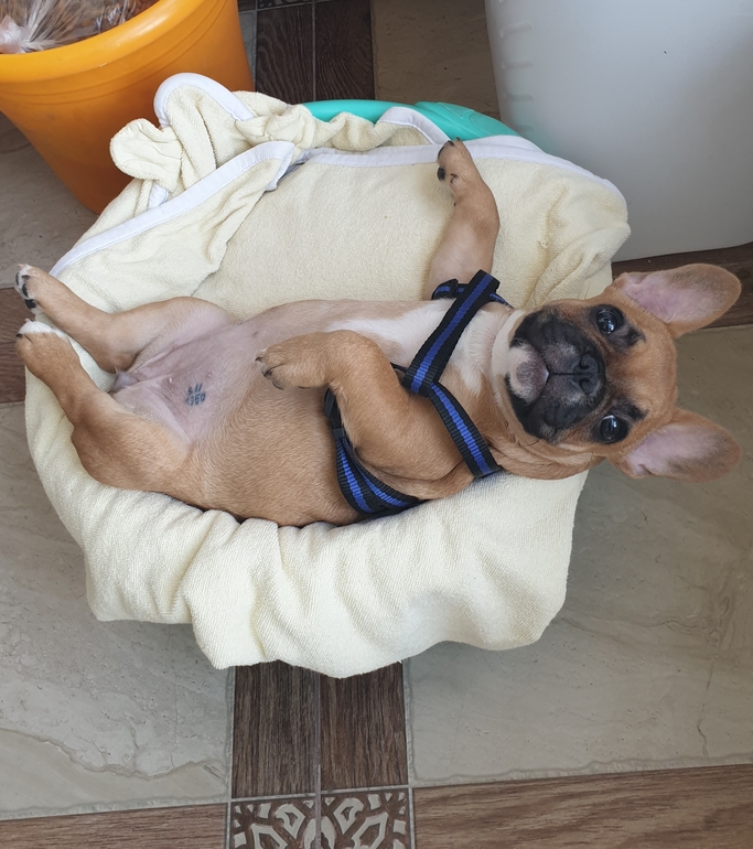 Собаки. Болезни, прививки, советы по уходуЩен французского бульдога, через неделю будет три месяца. Веселая, активная девочка, ест хорошо, дела делает исправно, какахи (простите уж за подробности) норм, не жидкие. 10 дней назад сделали прививку, перед этим как положено глитогонили. В общем, с виду и по ощущениям все ок.Щупала сейчас ей животик (мягкий, не раздутый), нащупала слева в паху уплотнение. Подвижное, не болезненное, при изменении положения собаки оно словно уходит.. Вот сейчас думаю, что это? Каловые массы в кишечнике или что? Внутренние органы? Печень вроде справа и у собак, желчный мож? Перед прививкой вет нас осматривал, живот прощупывал, сказал, что всё хорошо.Стоит ли беспокоиться?