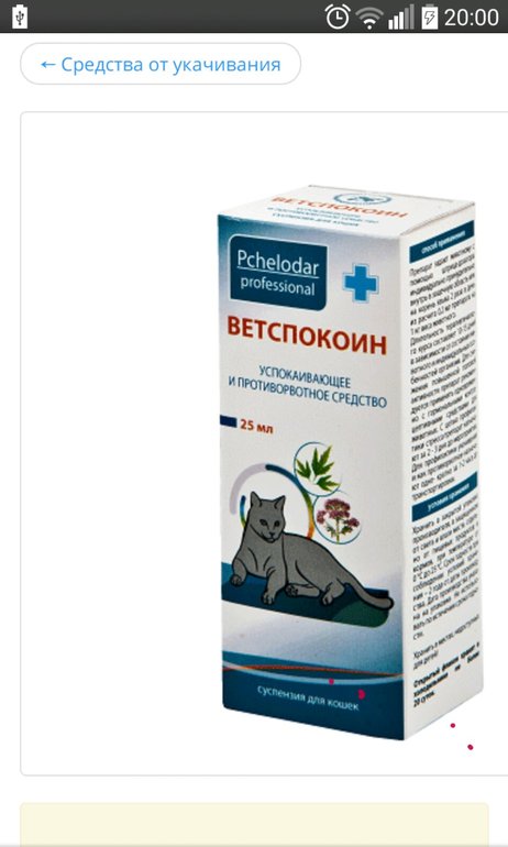 очень хорошее средство, покупала в сети магазинов "зоосфера" рублей за 200, там шприц удобный, прям в ротик капаете, за 2 часа до поездки, средства много, хватит поездок на 15 точно.