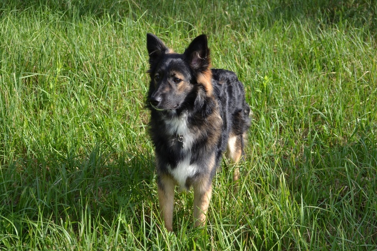 Ушки встали, хвост(жалко, что тут не видно) обрел лисью пышность и выросли шикарные штаны))) Хотя и проблем было с ним много, как бывшеприютский, он абсолютно не был социализирован, панически боялся улицы. Но кинолог и зоопсихолог помогли: Пушок теперь хорошо гуляет, дома конфузов больше не бывает, отлично знает команды. Правда, у него повышенное либидо - но сей вопрос через месяц будет решен, а то и сам мучается и нас достает повышенным вниманием.