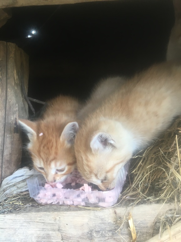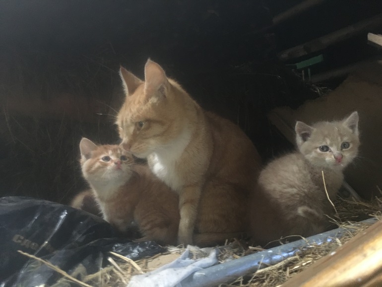 подкармливаем, ищет дом для своих малышей. Они в заброшенном сарае, на чердаке.