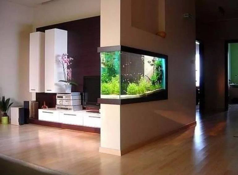 Рыбки, аквариумыДавно мечтала завести рыбок. Понятия не имею, что и как делать. Буду в интернете просвещаться))) Ну, если кто даст какой полезный совет или лайфхак- буду рада. Так вот... Мне в аквариумах всегда смущала тот факт, что он большой и его куда-то надо ставить. В интернете вот такую идею увидела. Круто! Одно не могу понять, а как его чистить, если вот так в стену замуровывать?))) Наверное, как-то он выдвигаться должен... Что думаете?