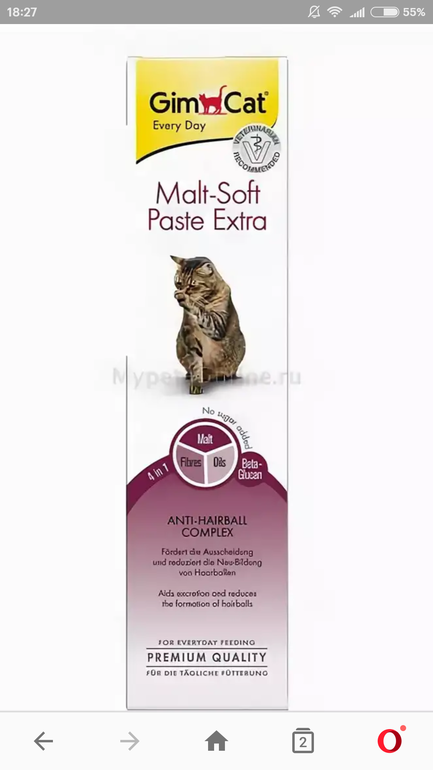 Мы нашего кота кормили такой пастой,если начинал рыгать шерстью. После мальт пасты прекращал
