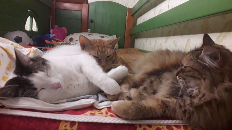 Ручной мурлыка дома. Но на даче соседские коты его побаиваются.