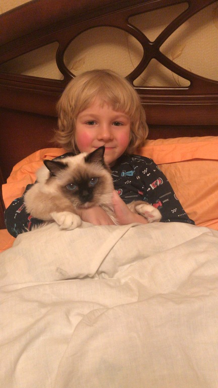 По характеру это оказалось невероятное животное, я его любя зову «наш валенок», у меня активный сын и уж как он его достаёт, это надо видеть, Саймон ни разу за все время не выпустил когти, он даже играет со всеми членами семьи без когтей, спокойно перенёс первое купание, опять же не вырываясь и не царапаясь, он все время мурлычет, такой добряк, и очень сильно любит нас, впрочем как и мы его. Я таких котов не видела раньше, мой предыдущий кот был с характером, а этот просто добряк)))! Ну правда, очень добродушный и любвеобильный)))! Вообщем, за это время он стал полноправным членом нашей семьи и я ни разу не пожалела, что оставила малыша!