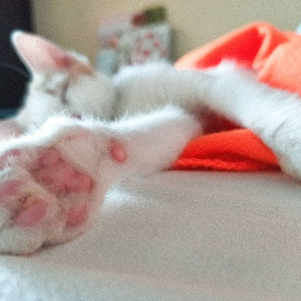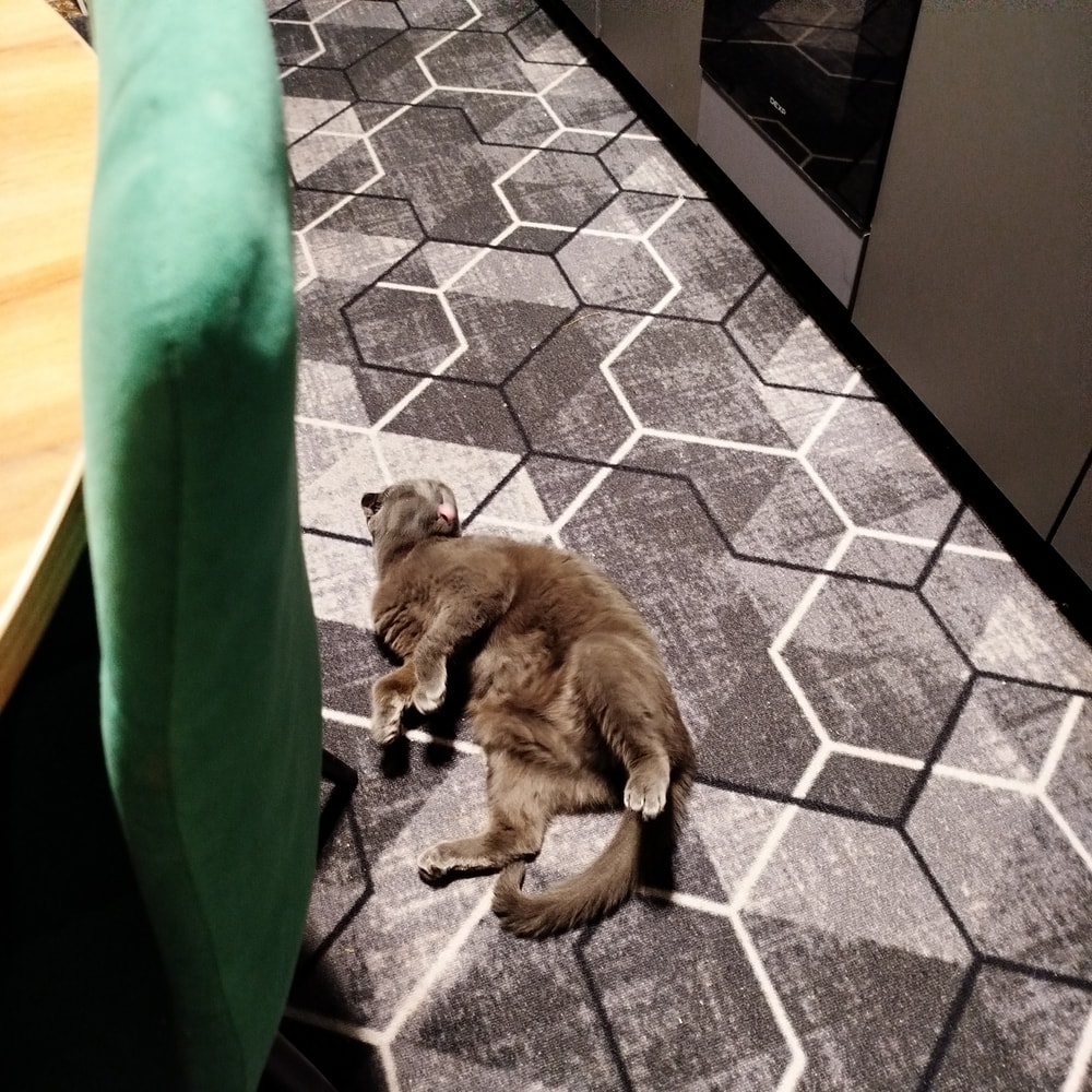 В общем, как дела сейчас у всех троих. Тотошка нормально живёт, сразу адаптировался, только свекрови он мешает, квартира маленькая, она ночью слышит, как он скребет в туалете, и ее это будит. Но я ей сказала, чтоб если она вдруг захочет от него избавиться, то только нам пусть отдает, будем сами как-то этот вопрос решать. Надеюсь, она меня услышала. А то бывает, что одно и тоже приходится несколько раз просить, чтобы наконец-то меня поняли. Ежка три дня ночами орала, хотя всю жизнь была тихоней, вообще ее не было слышно, кота искала, наверное... Зато теперь она свободно себя чувствует, валяется где хочет, есть стала по сто раз на дню, голос подаёт часто теперь 🤣, обои драть начала, но это не проблема, все равно ремонт делать будем, мы антивандальные обои купим, да и всё. Ежка на фото ниже развалилась на кухне, при коте она себе такого разваливания не позволяла (раньше она лежала где хочет, но так разваливалась только когда я рядом ложилась на кровать).