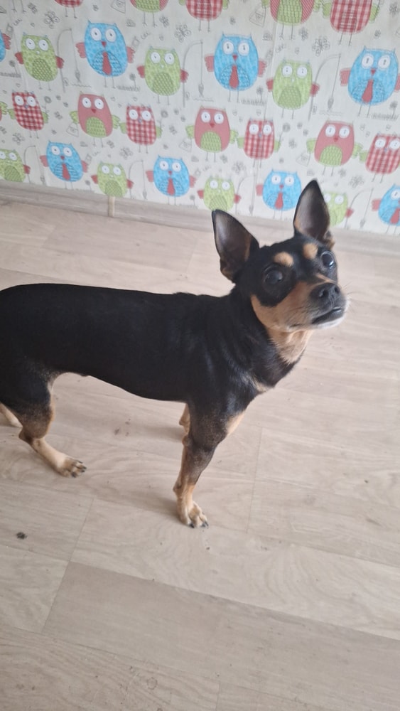 Мне почему то чихуёвину напоминает))) пониже и покороче чем той. У коллеги абсолютно гладкошерстный чих, такой же крепенький)