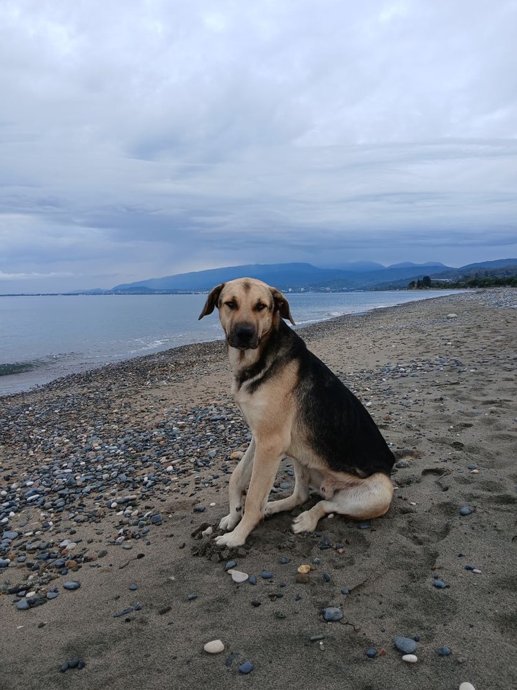 На пляже нам встретился труп собаки скорее всего умершей от голода..... это была уже середина срока пребывания в Абхазии и тогда я поняла, что не могу его тут оставить.....