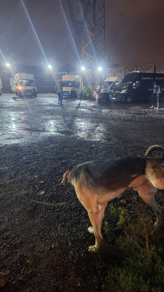 27 октября в 23-00 мы приехали по указанному адресу транспортной компании и там было много машин и сотрудники выдают собаку по номеру заказа.