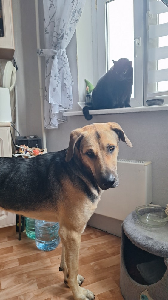 Мой сын поддерживает меня во всех моих безумных планах, когда я прислала ему фото Джэка и рассказала о его жизни, сын сказал..вези))) не смотря на то что у нас живут коты.
