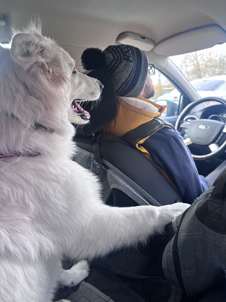 отсюда вытекает куча непросто решаемых проблем - лай, особенно на собак, подбор (именно нервный, когда начинает пылесосить), плохой самоконтроль, тянет на прогулках, бросается при встречах (хотя спокойно приходим и не сюсюкаем), что при беременности стало особой темой