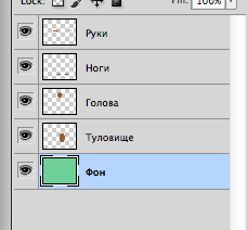 - снова создаем новый слой, обозначаем его как "ноги" и рисуем ножки человечка;