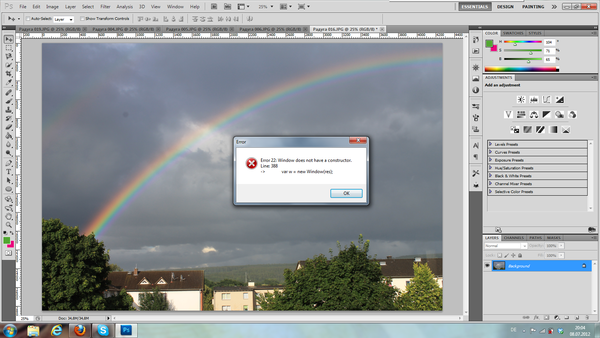 мне нужна помощьНажимаю File-Automate-Photomerge,выскакивает ошибка 22 "Window does not have a constructor".Что не так?Помогите пожалуйста!