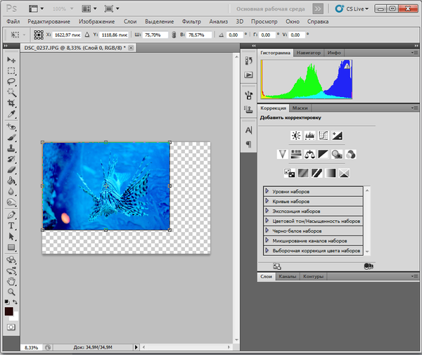 Решила второй урок сделать и не могу уменьшить картинку, чтоб перенести на другой фон(((((