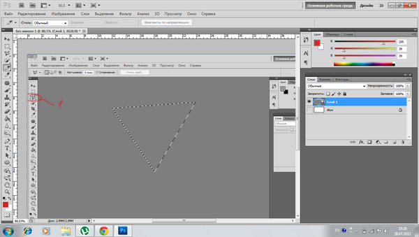 1.Допустим, надо выделить треугольник. Нажмите левую кнопку мыши и ведите курсор к основанию, после чего опять отпустите кнопку мыши, опять нажмите, и выделяйте основание треугольника, опять отпустите и нажмите кнопку, выделяйте вторую сторону, пока выделение, не дойдет до первой стороны. Двойным щелчком левой кнопкой, активизируйте выделение.(Не получилось сделать)