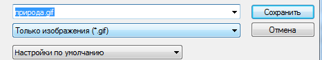 уффф.... всё, поняла. Нажмите "только изображение". Там ведь в скобочках указано, что "только изображение" это и есть формат (.gif). Или у вас нет?