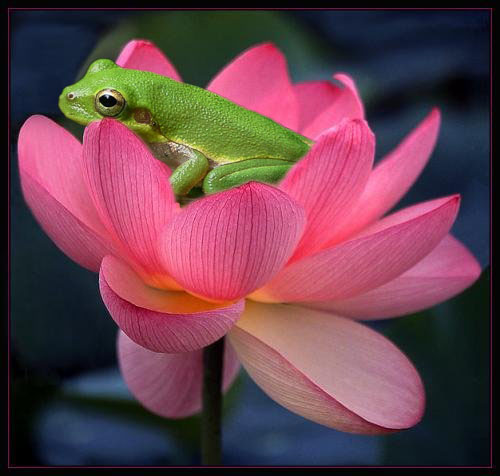 Цветок: Исходный слой разделила на 2 слоя им ежду ними третим поместила лягушку.