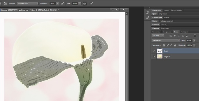 6.Проверить получившийся результат можно, отключив слой "Original",(нажав на глаз слева от названия слоя) или увеличив прозрачность слоя "Paint".