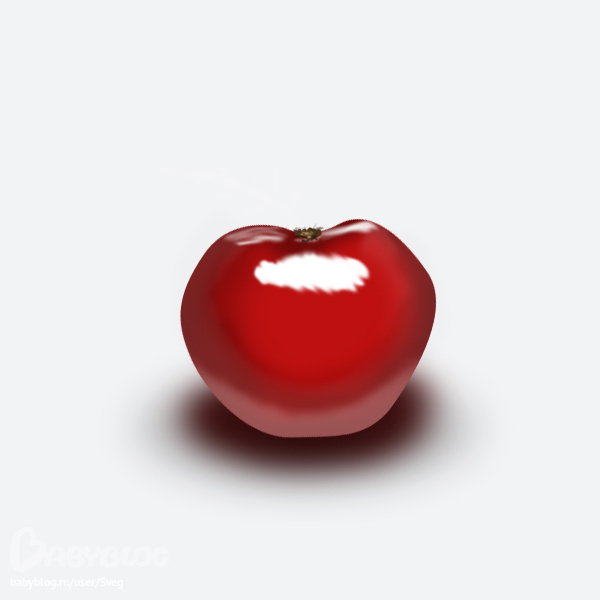 Создаем новый слой в котором будем рисовать теневую часть вишни. Преобразуем его в clipping mask (alt+cntrl+G) и мягкой кистью прорисовываем тень.