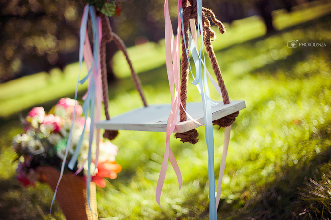 И многие другие декорации ждут своих героев. Веревочные качели с лентами для мама, зона на пледике с подушками.