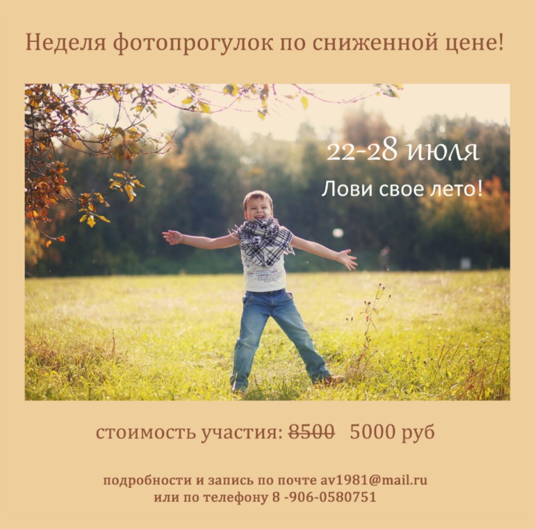 Количество фотопрогулок, которые могу предложить по данной акции ограничено.