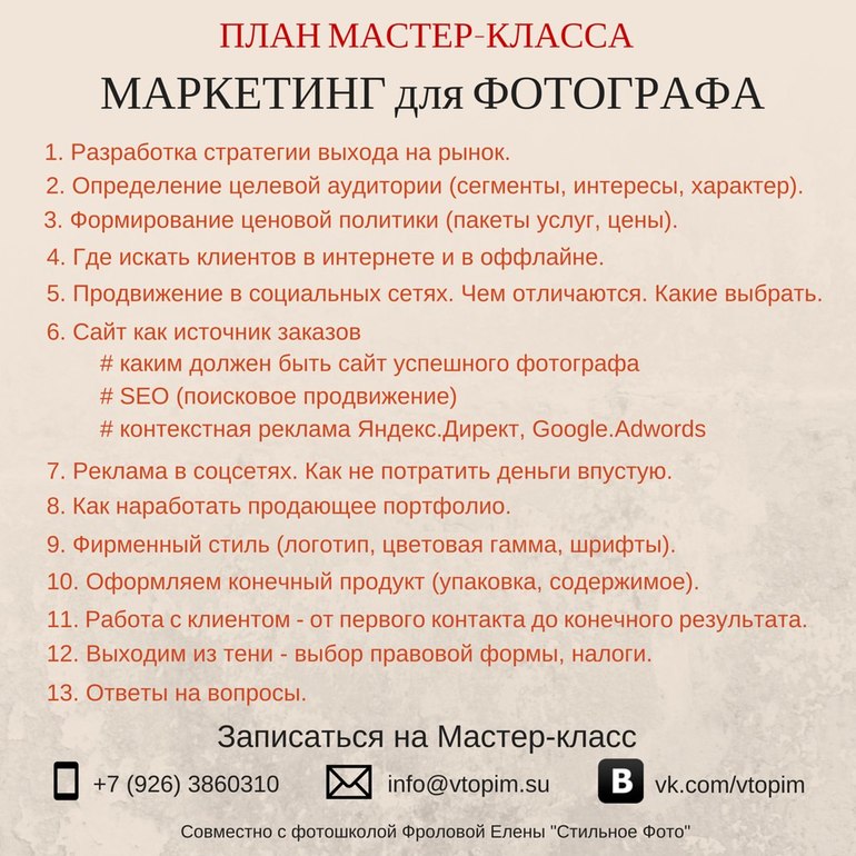 МК "Маркетинг для фотографа" 31 мая