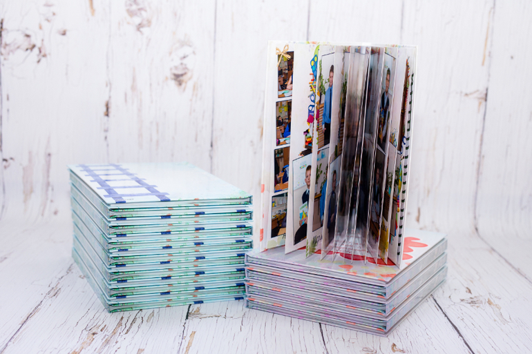 2. фотокниги "Лайфлат" размером 21×30 и 20×30. Книга отпечатана на цифровом оборудовании, но очень похожа на классическую фотокнигу: твердая фотообложка, глянцевая ламинированная поверхность, плотные листы и такая же технология сборки - через склеивание цельных разворотов между собой.