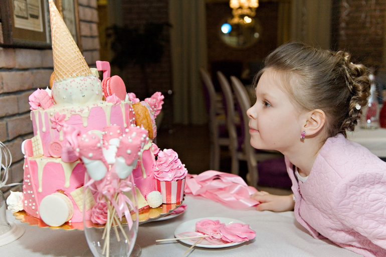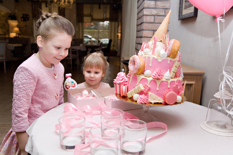 Фотосъемка детского Дня Рождения в ресторане Ларго. Бело-розовая гамма в оформлении угощений и наряде именинницы - настоящий девчачий праздник ))![]()