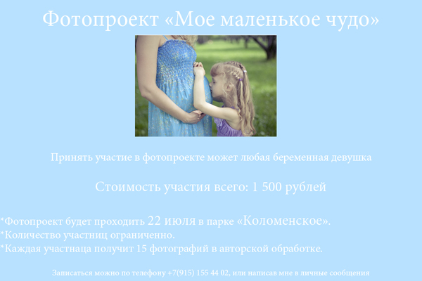 УслугиПринять участие в фотопроекте может любая беременная девушка