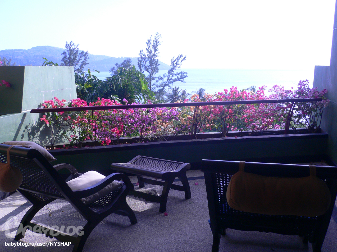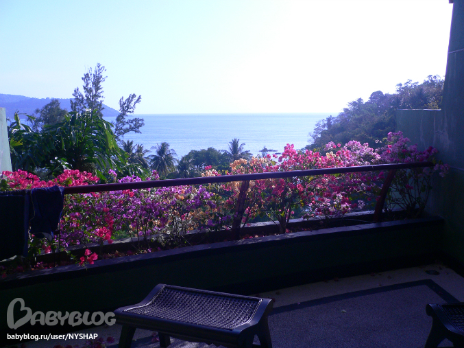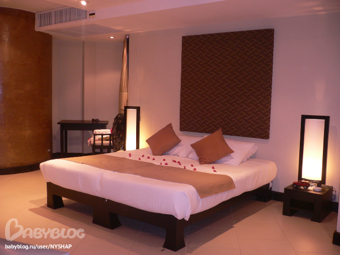 Наш ОТЕЛЬ находится на горе, увидев его в темноте мы сначала расстроились,но зайдя в номер наше расстройство улетучилось, т.к номер был клёвый и необычный 65 м2, шикарная терраса с видом на море, кровать в тайском стиле(на кровати лежали красивые живые цветы), здоровская душевая.Отличный мини- бар, тапочки, халаты, все принадлежности для душа ,и чая, сейф, т.д. Нас угостили при заселении в отель свежевыжатыми соками, дали купоны на 1 бесплатный ужин на троих , так же 1 сеанс бесплатного массажа каждому,в номере стояла карзина с фруктами. Всё это было очень приятно.