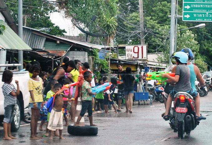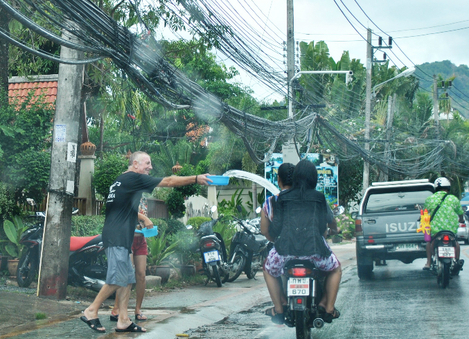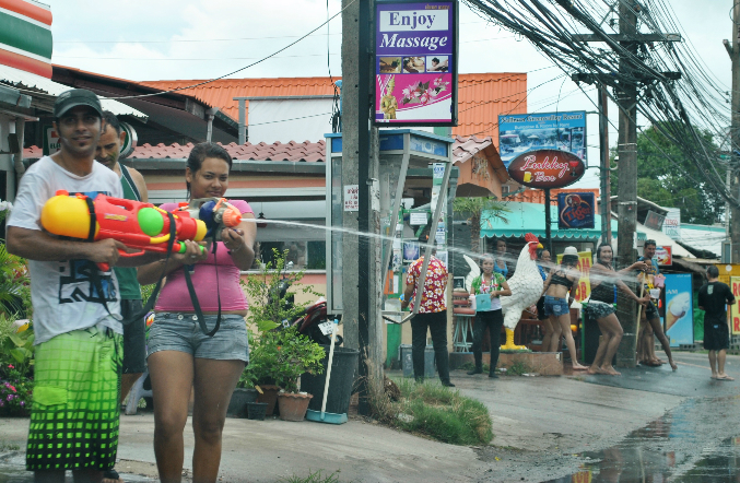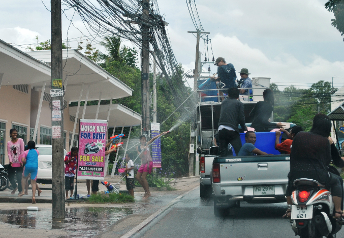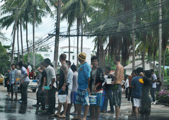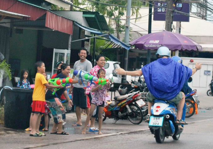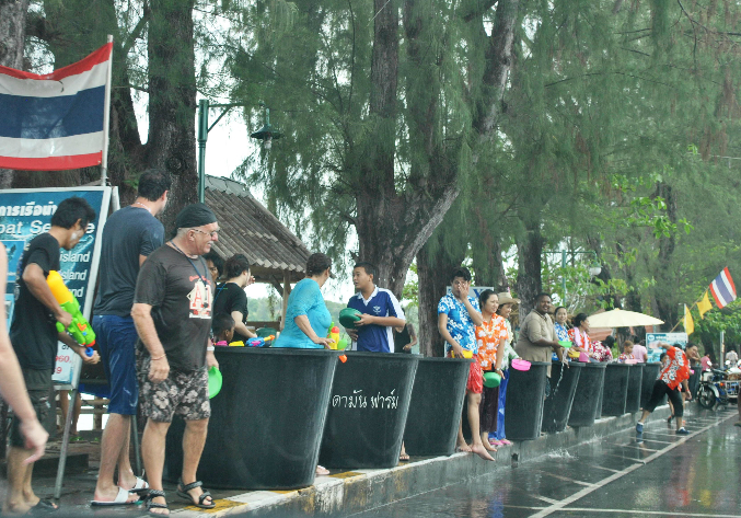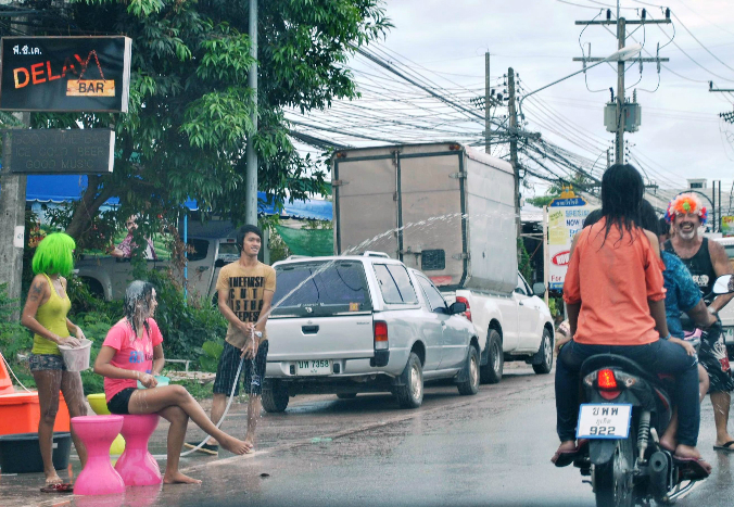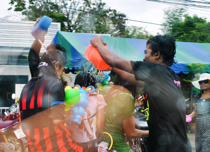 Тайская молодежь в этот день обливает друг друга водой, эта традиция призывает к началу сезона дождей для получения хорошего урожая риса.