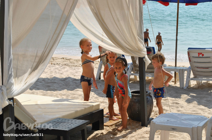 Накормив детей в первую очередь, взрослые сели обедать, а дети наслаждались морем.