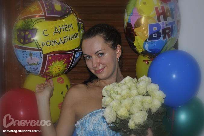 Итак, настал мой долгожданный день! Муж цветами, дети обнимашками и поцелуями))) Папочка приподнес денежный подарок.Зашла подруга-соседка поздравила шариками - очень приятно!