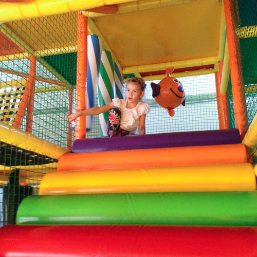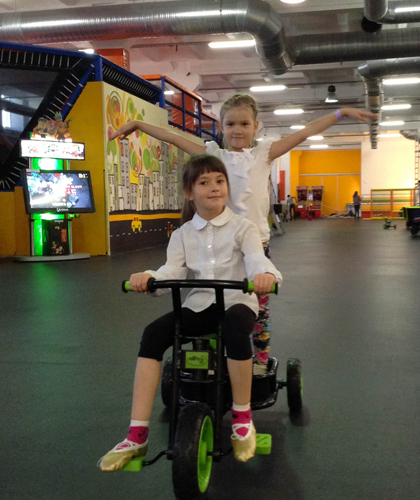 Напрыгались на батутах и попадали в поролоновый бассейн, налазились(вместе!) по лабиринту с горками, наигрались в аэрохокей и автомат-баскетбол. Дети накатались на самокатах, великах и еще каких-то штуках, где едешь лежа. Для малышей есть отдельный зал с сухим бассейном и и горочкой. И это все неограниченное время и только за входную стоимость.
