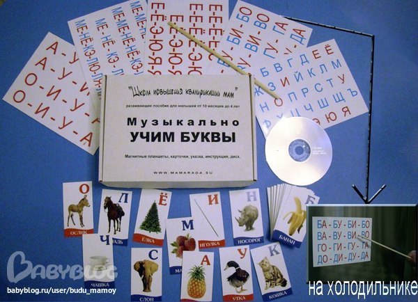 - 29 карточек с буквами (Й,Ь,Ъ – отдельно не изучаются, они пропеваются в алфавитной песне вместе с остальными буквами и присутствуют только на магнитном планшете, это обусловлено методикой)
