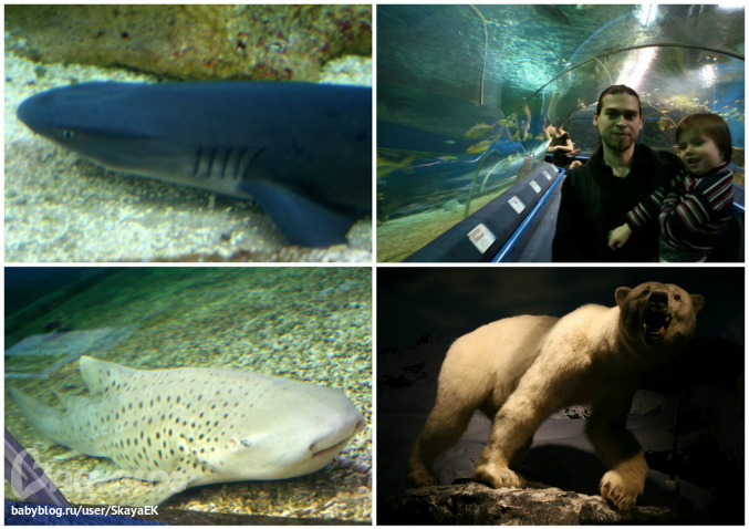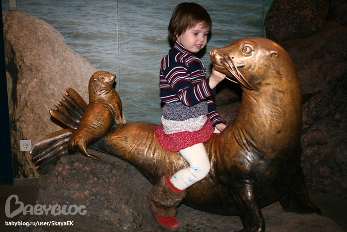 А сегодняшний день знаменателен походом в океанариум. Какие там рыбки! Я обожаю скатов. Такие они красивые. Они же не плавают, они летают в воде! На шоу со скатами мы не попали, для нас оно поздновато. За то налюбовались на тюленей. Хороших фотографий немного. Съемка только без вспышки, а там довольно темно.
