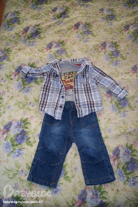 костюм джинсы-футболка-рубашка. привезен из Германии. размер 74 состояние идеальное. цена 700р
