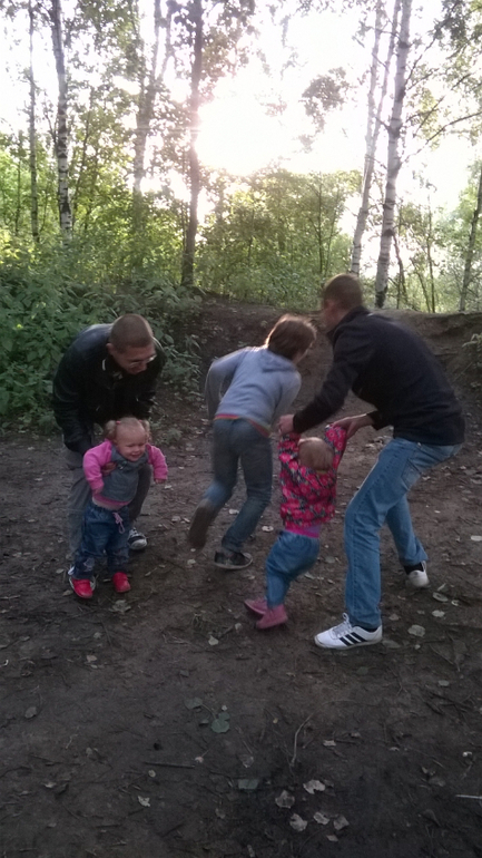 Потом папы поиграли детьми в футбол))