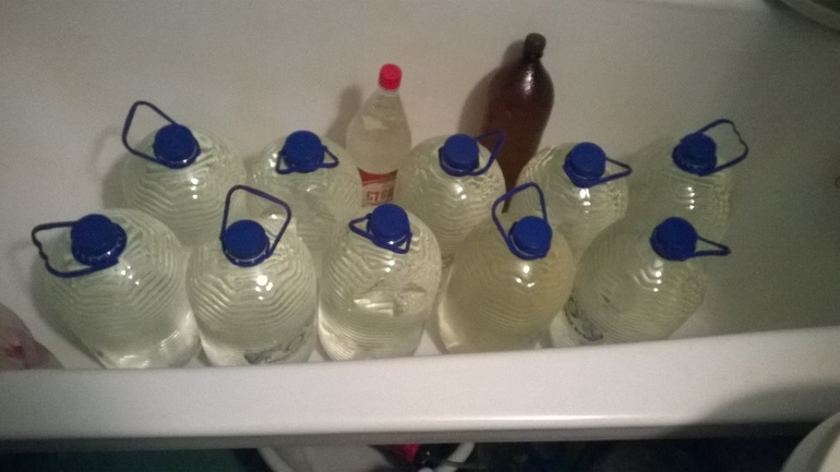 Короче, поехали с мужем в цивилизацию, к свекрови, благо дело живет недалеко и счетчиков на воду у нее нет. Гору посуды перемыли, сами помылись и воды набрали 16 бутылей по 6 литров. До завтра точно доживем)))