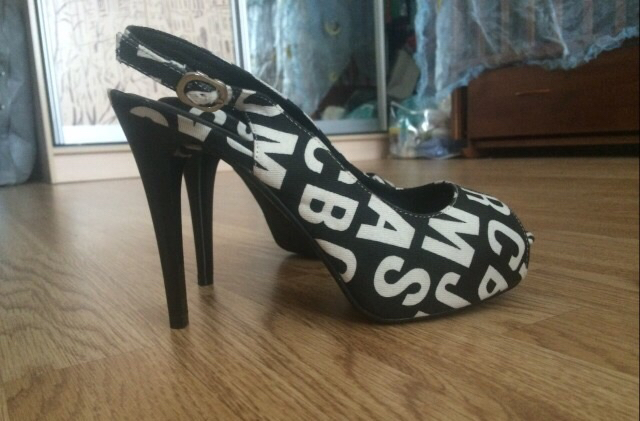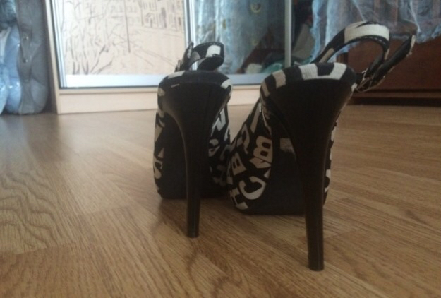 Босоножки черно-белые с принтом буквы, 38 размер. 1200 руб